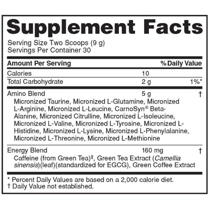 Essential Amino Energy de ON combina una proporción óptima de la forma libre de aminoácidos de rápida absorción (incluyendo los constructores musculares BCAA y la arginina para conseguir bombeos vasculares más intensos) con energizantes naturales, beta Alanina e ingredientes potenciadores de Óxido Nítrico para ayudarte a alcanzar el siguiente nivel.