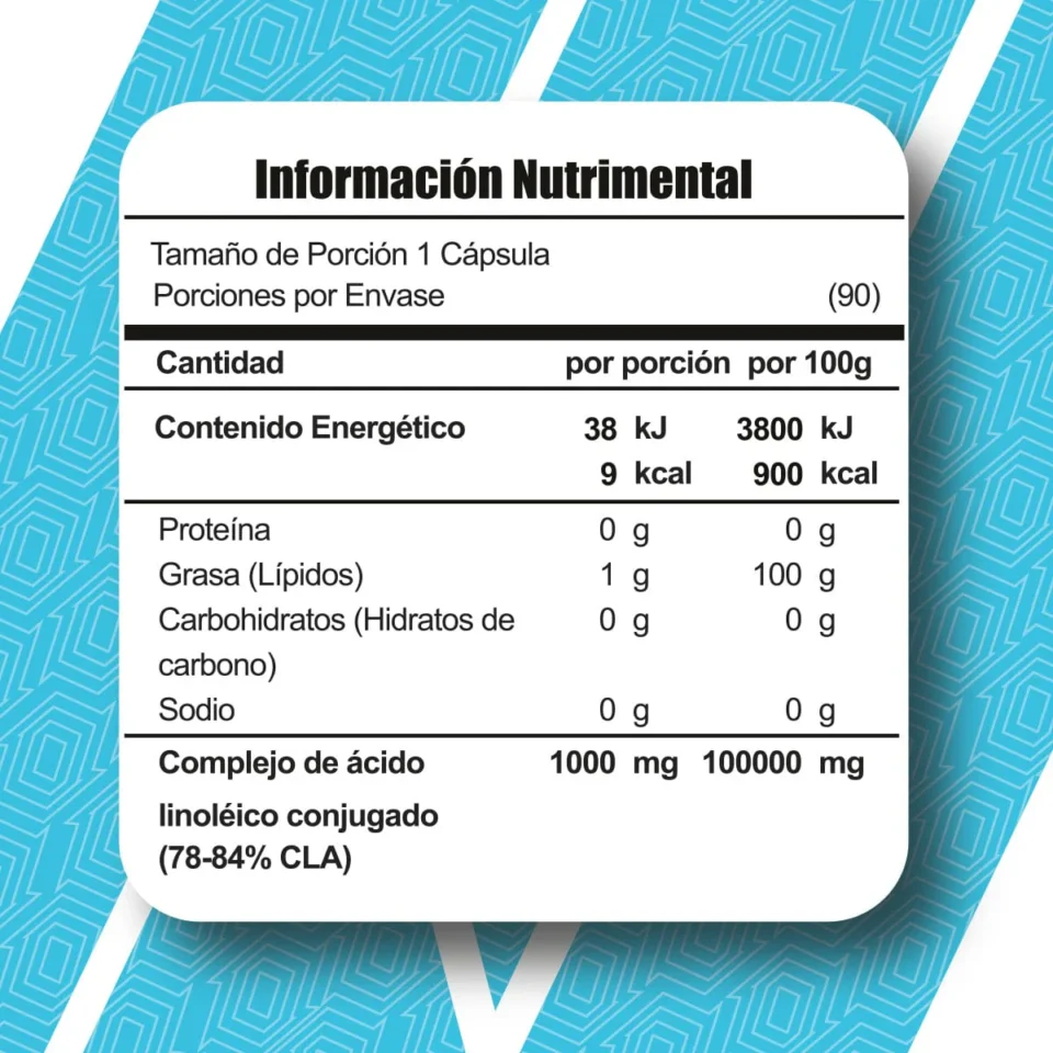 El CLA ó Ácido Linoleico Conjugado de CLA+ es un ácido graso OMEGA 6 encontrado naturalmente en pequeñas cantidades en la carne y lácteos. La suplementación con CLA puede tener un impacto significativo en como el cuerpo utiliza las reservas de grasa. Estudios sugieren que la suplementación con CLA puede ayudar a reducir la grasa corporal y aumentar la masa muscular. Contrario a otros quemadores de grasa CLA+ no contiene estimulantes. Uso Recomendado: Como suplemento alimenticio para adulto, tomar 1-2 capsulas 1-3 veces al día preferentemente con las comidas