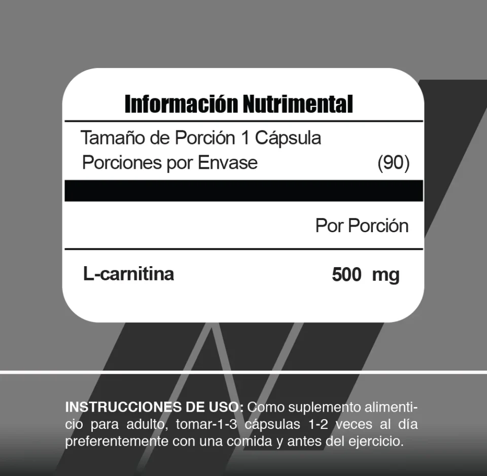 La L-Carnitina de Carnitine+ es un aminoácido modificado que favorece la producción de energía celular asistiendo el transporte de grasa a la mitocondria donde se lleva a cabo la beta oxidación de ésta para la producción de ATP (Energía celular). Uso Recomendado: Como suplemento alimenticio para adulto, toma 1-2 capsulas 1-2 veces al día preferentemente con una comida.